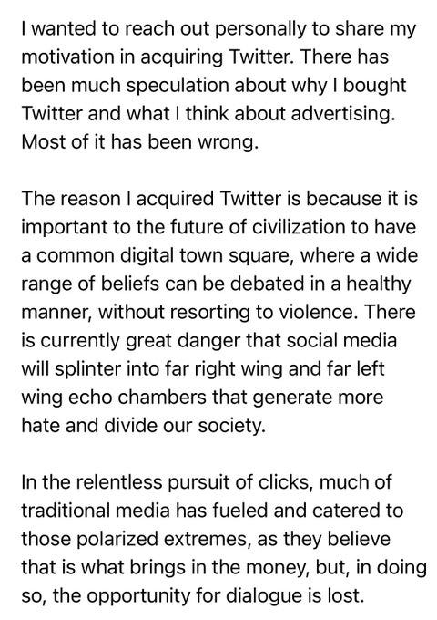 Many of my colleagues and friends immediately jumped ship from the network. I'm waiting to see what happens. Musk needs to 1) make Twitter profitable; 2) address content moderation in a way that benefits everyone. Much more to come on this.